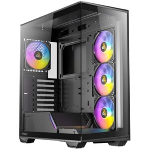 Antec FLUX Mid Tower PC Case – Tempered Glass, White/Wood, 5 PWM Fans, USB-C, E-ATX/ATX/mATX/ITX Compatibility