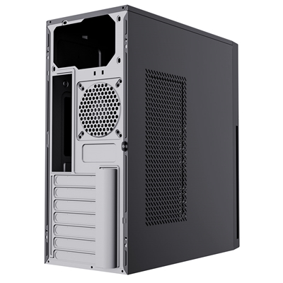 CiT Academy Mid-Tower Office PC Case is a smart, state-of-the-art business PC case designed for professional workspaces. Supporting ATX, Micro-ATX and Mini-ITX motherboards, the Academy features a sleek black exterior with a cooling-focused front panel design. An 80mm fan is pre-installed at the rear, with support for additional front fans to enhance airflow.