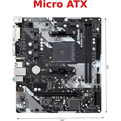 ASRock B450M-HDV R4.0 Super Alloy AMD AM4 Socket Motherboard, Micro-ATX, 2x DDR4 Slots, 1x M.2 Socket, GbE LAN, 1x D-Sub / 1x DVI-D / 1x HDMI Port