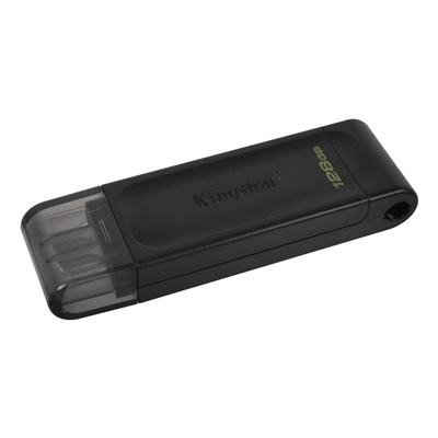 Kingston DT70/128GB DataTraveler 128GB USB Flash Drive, USB 3.2, USB-C, Gen1, 80MB/s, Cap Design, Black, Retail.