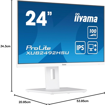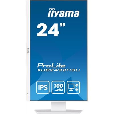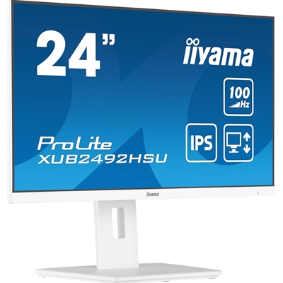 iiyama 24 Inch IPS Monitor XUB2492HSU-W6, Height Adjustable, Full HD, 100Hz, 0.4ms, FreeSync, HDMI, Display Port, USB Hub, White