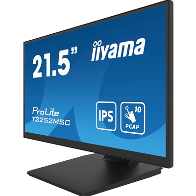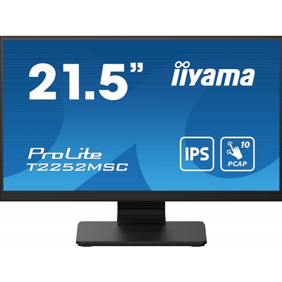 iiyama PROLITE T2252MSC-B2 21.5 Inch 10 Point Touchscreen IPS Monitor, Full HD, 5ms, USB Hub, HDMI, DisplayPort, Speakers, Black, Internal PSU, VESA