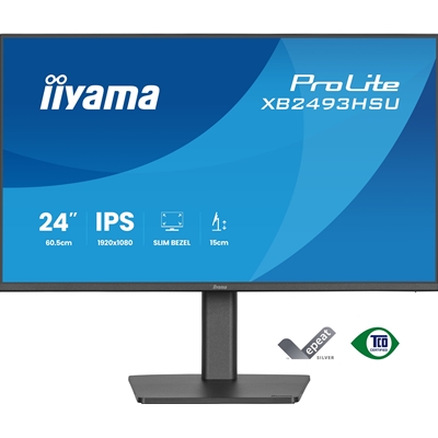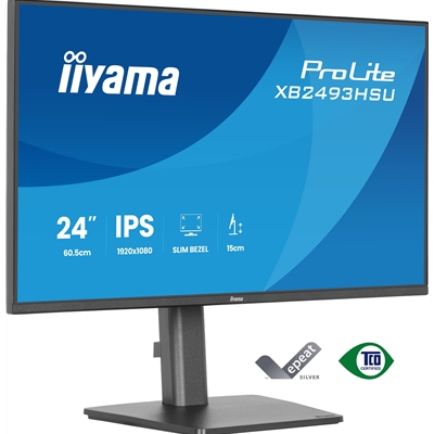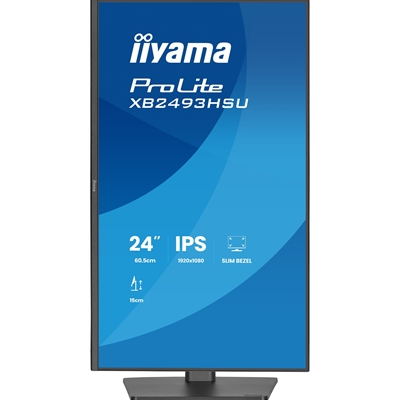 iiyama PROLITE XB2493HSU-B1 24 inch IPS Monitor, Full HD, 1ms, USB Hubx2, HDMI, DisplayPort, Freesync, 120Hz, Speakers, Black, ACR, Internal PSU, VESA, Height Adjustable