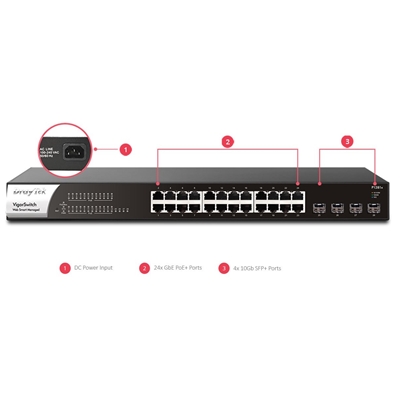 VigorSwitch P1281x 24 Port GbE 4 Ports 10Gbps SFP+ Switch with PoE/PoE+