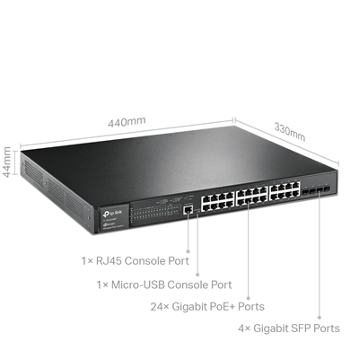Full Gigabit Ports: 24 x gigabit PoE+ ports and 4x gigabit SFP Slots provide high-speed connections.