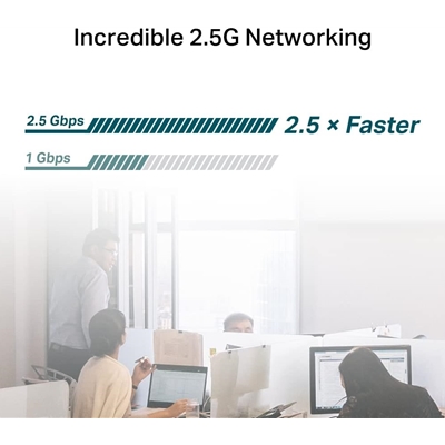 2.5 Gigabit Ethernet reaches blazing-fast data rates up to 2.5 billion bits per second—2.5x faster than standard Gigabit Ethernet. For bandwidth-intensive tasks, whether local data transfer or Internet access, the TX201 is up to the task.
