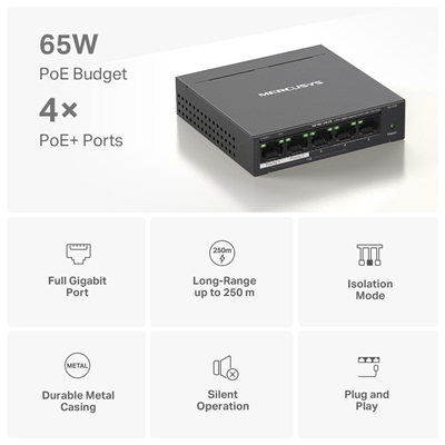 5-Port Gigabit Desktop Switch with 4-Port PoE(MS105GP)