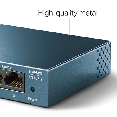 The interior components of LS105G are protected by high-quality metal casing to ensure a long product life. Having passed an array of stringent reliability tests, LS105G delivers switching performance you can depend on. Its compact size makes it ideal for deployment on desktops or work benches.