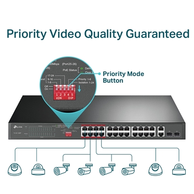 Priority Mode ensures high priority of ports 1–8 to guarantees the quality of sensitive applications like video monitor