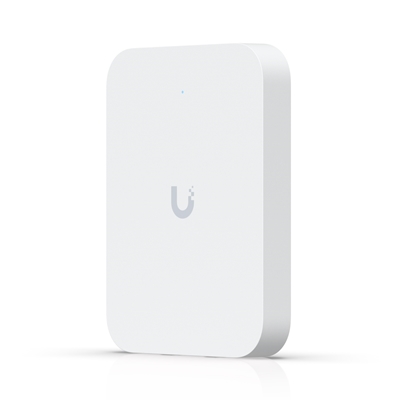 Wall-mounted WiFi 7 AP with 4 spatial streams and an integrated 2.5 GbE PoE switch designed for hospitality environments.