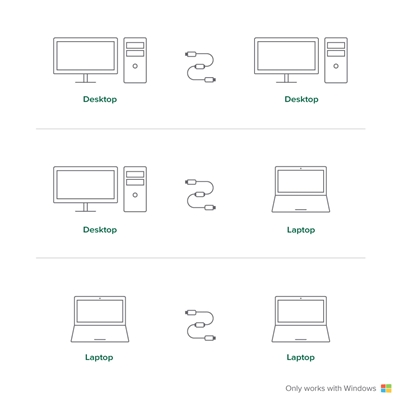Our USB 2.0 Transfer Cables (USB-EASY-TRAN) give you the power to transfer your important files and data between two Windows PCs at a time. With convenient data transfer over USB 2.0, plug-and-play ease, and point-to-point simplicity and security, you can transfer your important files and data with confidence.