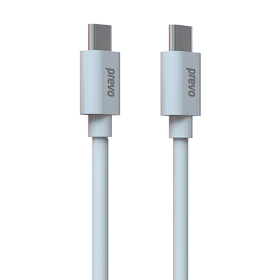 Prevo USB 2.0 60W C to C PVC cable, 20V/3A, 480Mbps, White, Superior Design & Performance, Retail Box Packaging